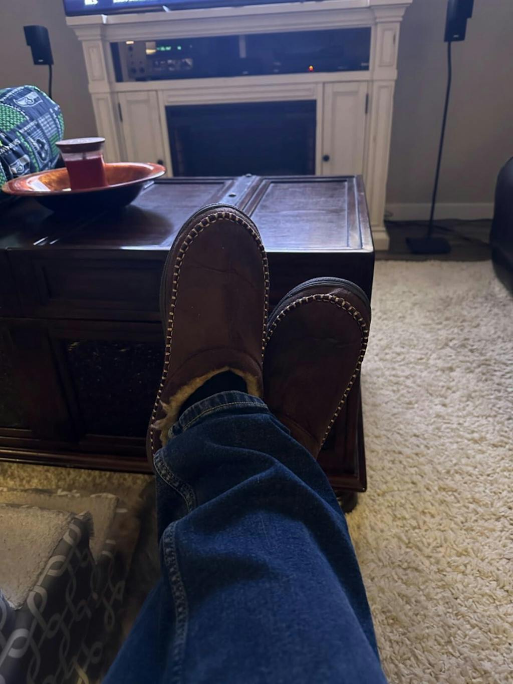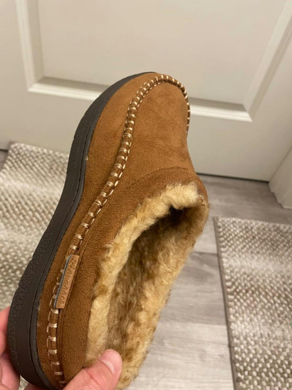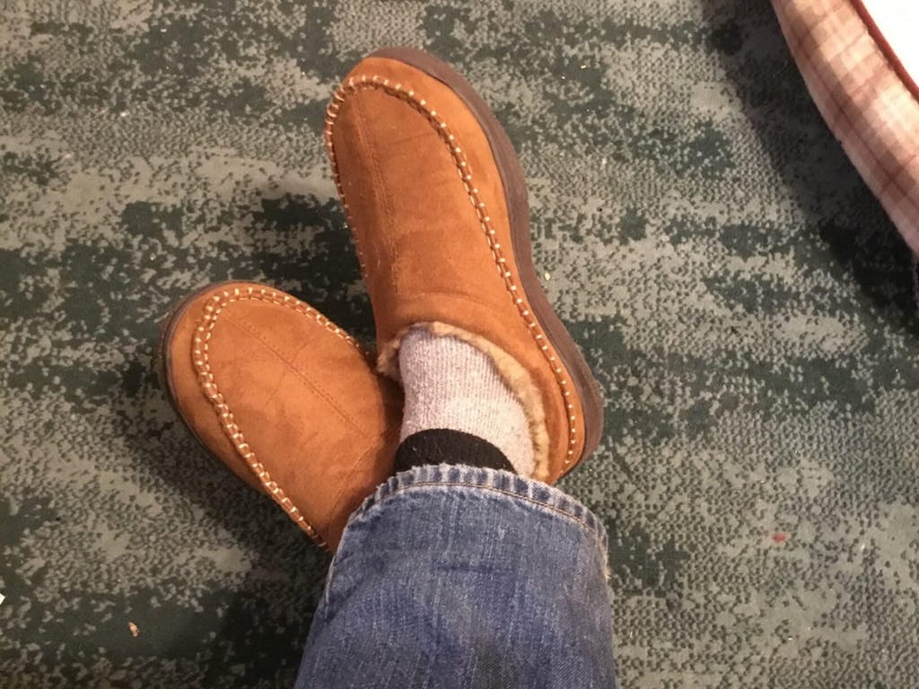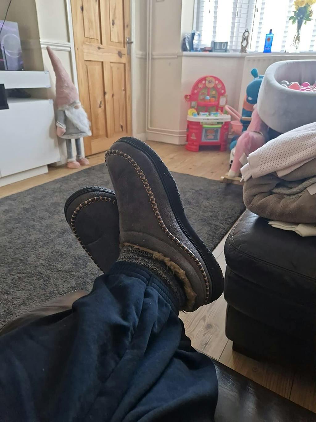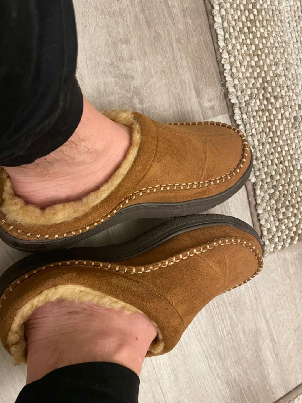 Bought for my husband as part of Xmas present. Didn't want to spend much on slippers but wanted comfy and decent looking. I love them, iv taken them over and wear them all the time. So cosy and comfortable