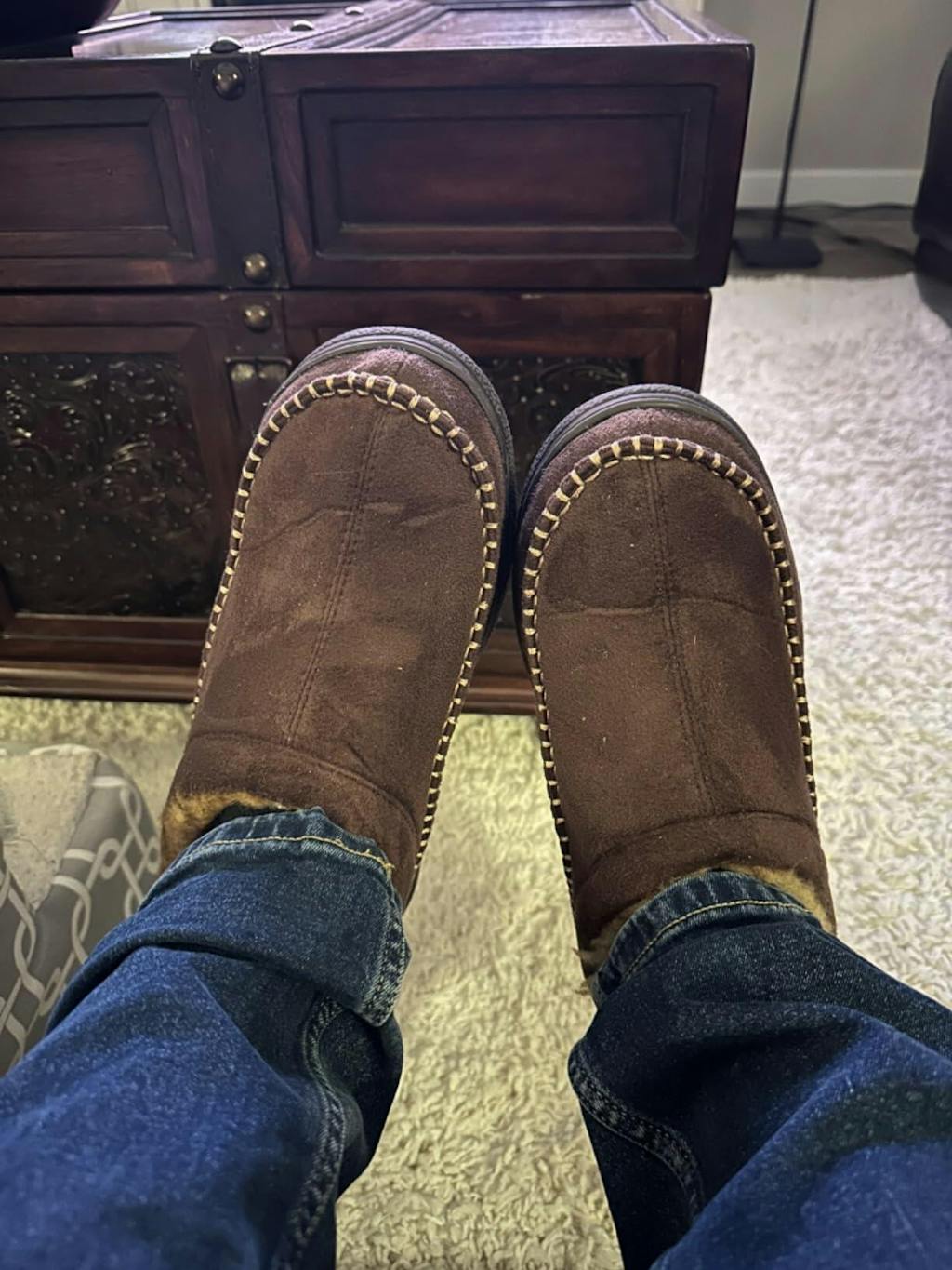 Bought these slippers as a great price and looked really warm upon arrival I put them on and wow so comfortable and warm I have had these for two weeks now and love putting them on very happy size 10 and fit well