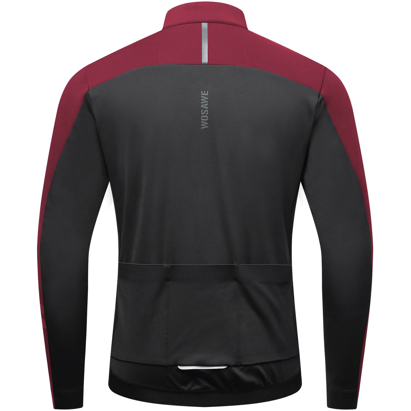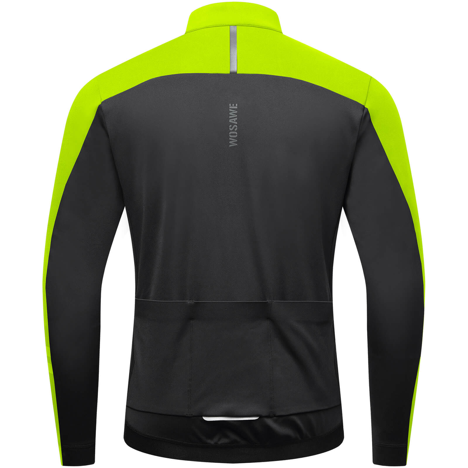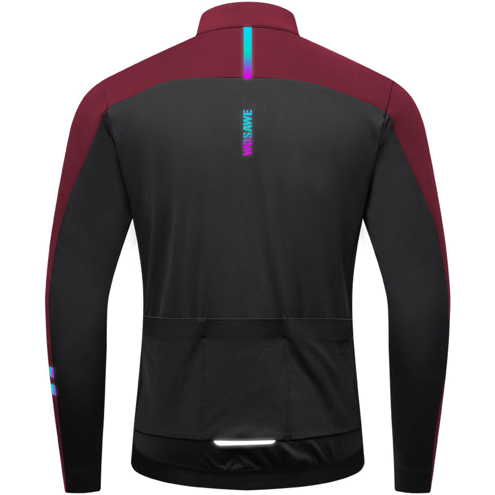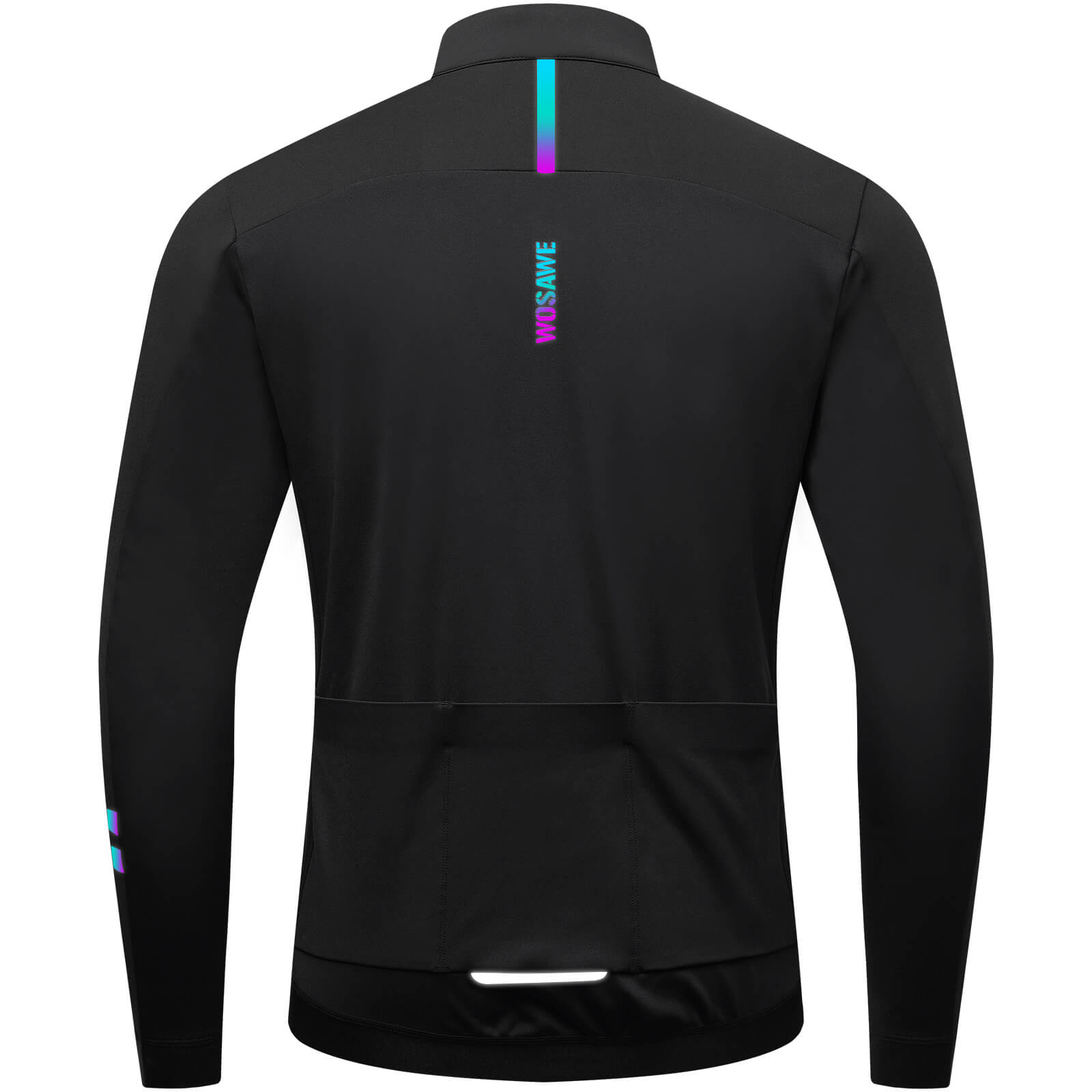 Reflective Design: Two colorful reflective strips on the left sleeve near the cuff, one colorful reflective strip in the middle of the upper back, and one silver reflective strip on the back pocket enhance visibility and safety in low-light or foggy conditions.