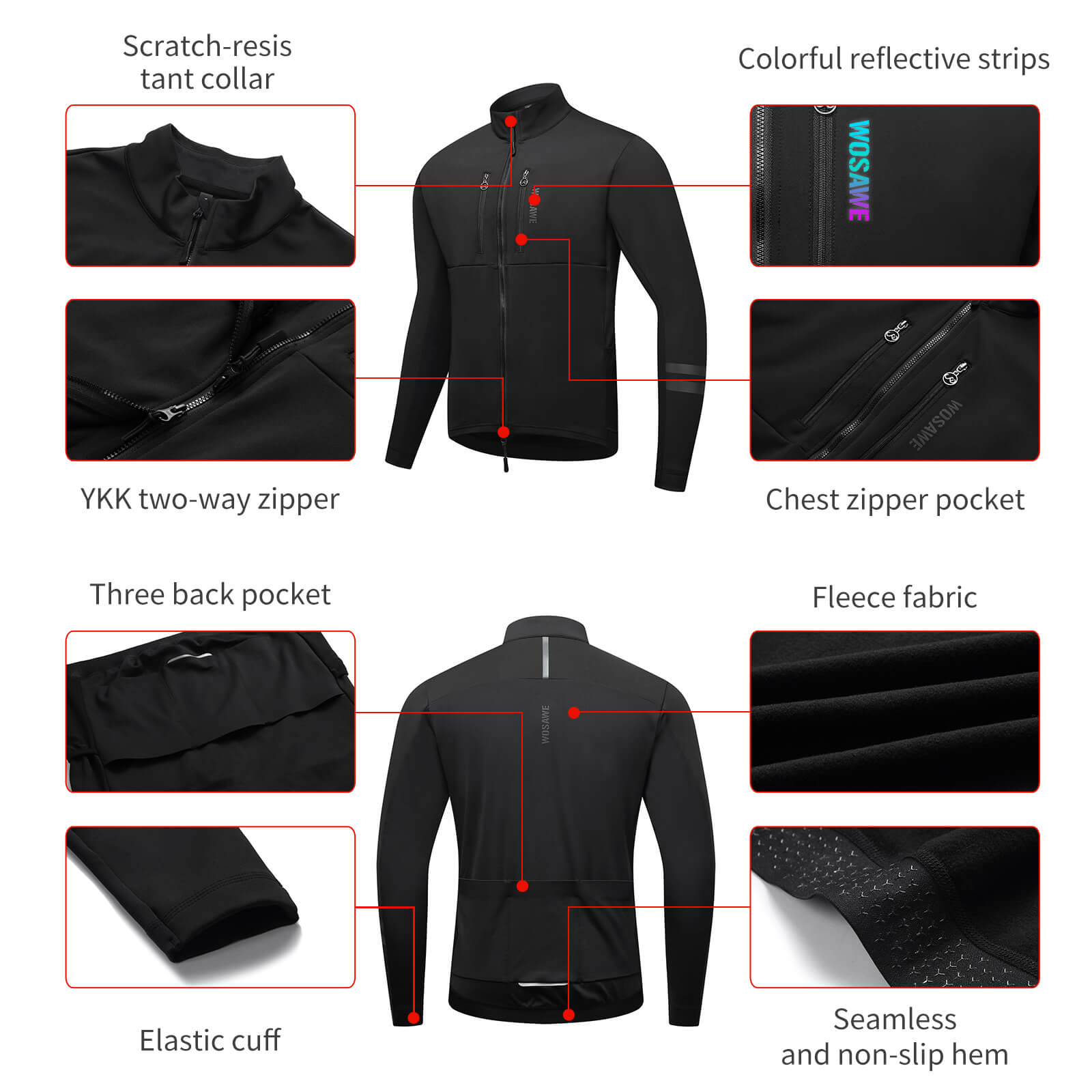Winter Fleece Cycling Jacket for Men & Women – Reflective Design, Multiple Pockets